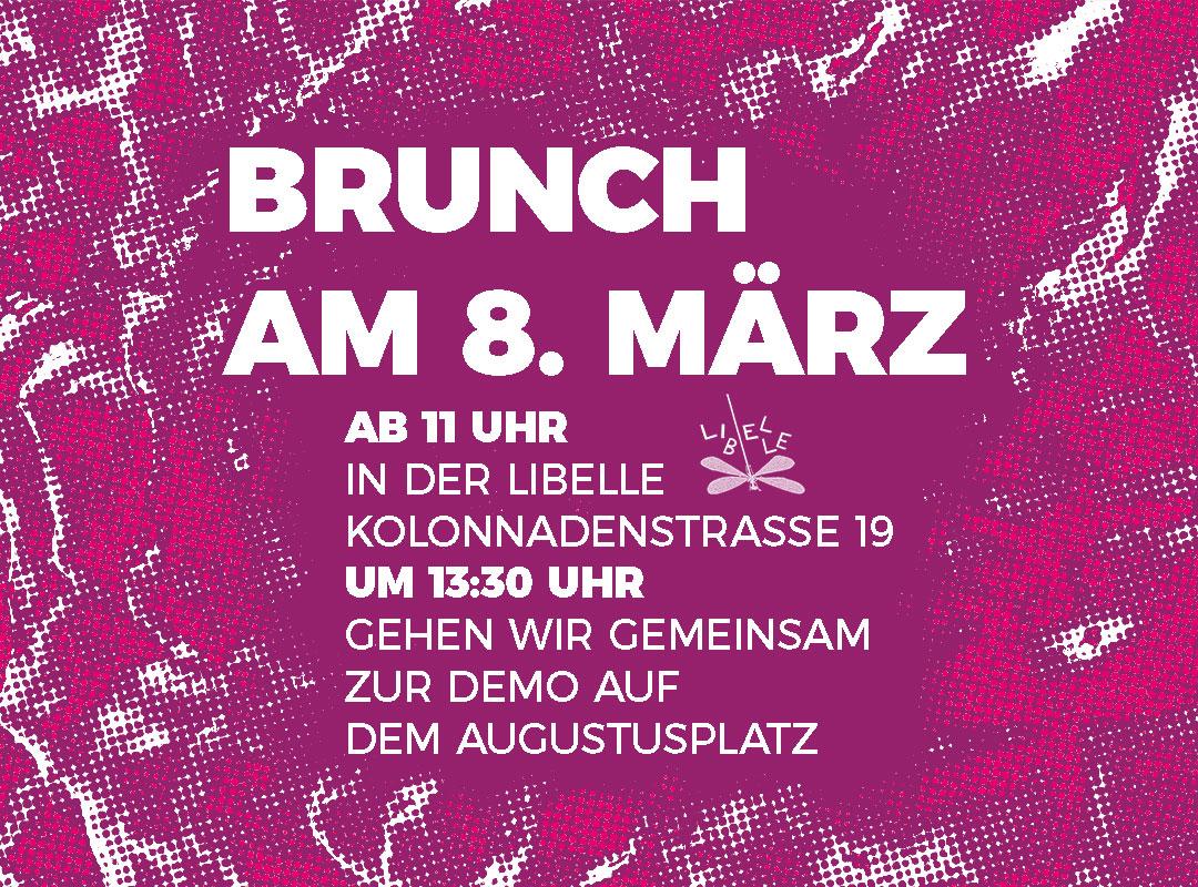Wir möchten gemeinsam in einen schönen und kämpferischen 8. März starten. Den Raum dazu bietet die Libelle, wir stellen das Buffet. Anschließend wollen wir gemeinsam an der Demo teilnehmen und dort deutlich machen, dass wir für einen linksradikalen Feminismus stehen: emanzipatorisch, antiautoritär, universalistisch.